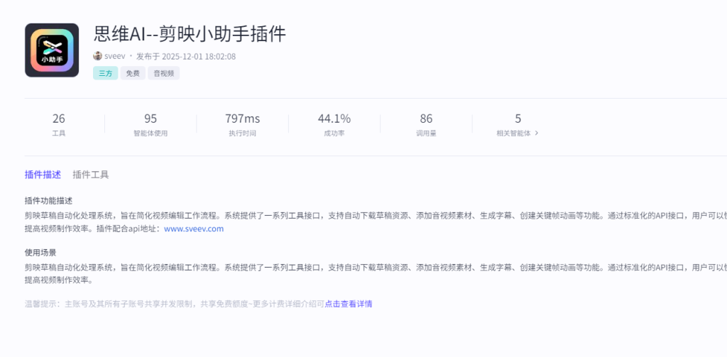 首页 > 插件中心 > 剪映小助手工具插件